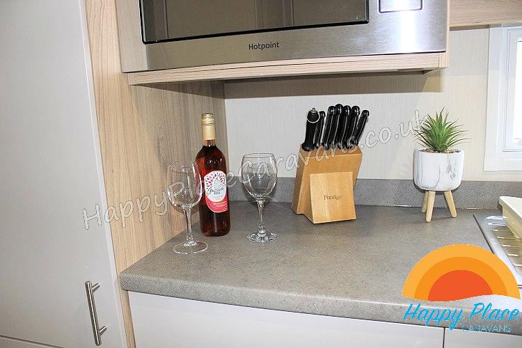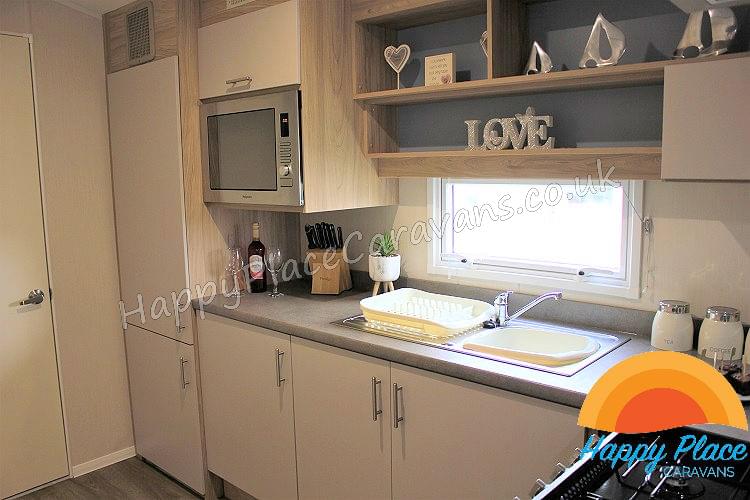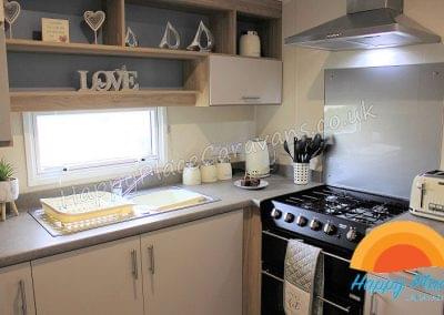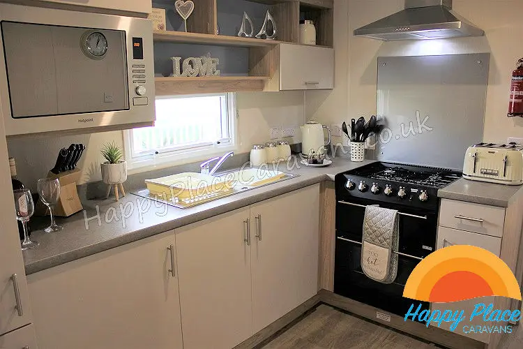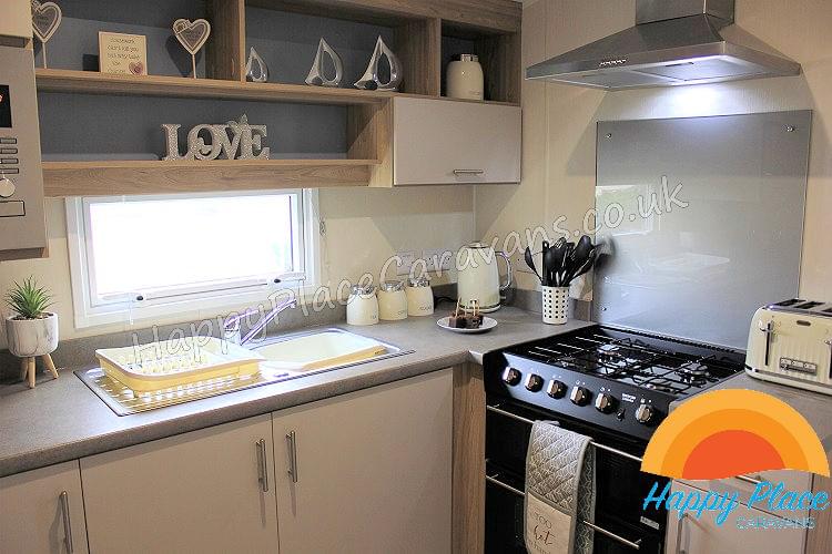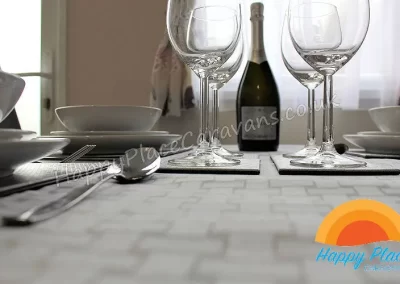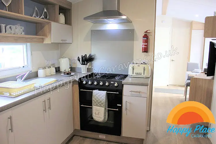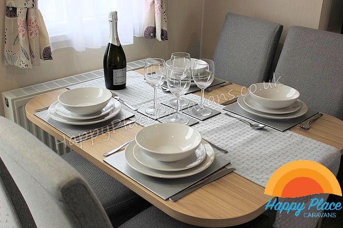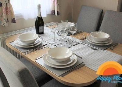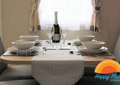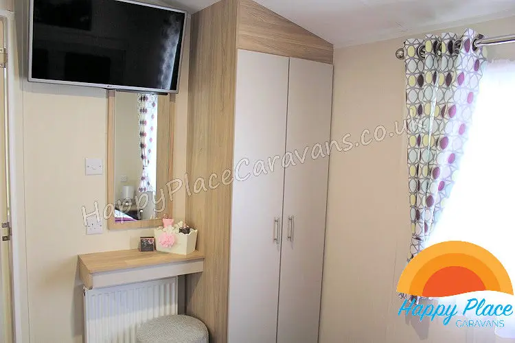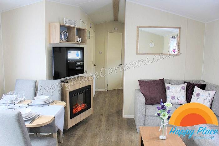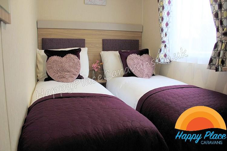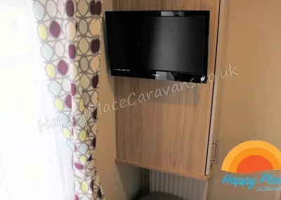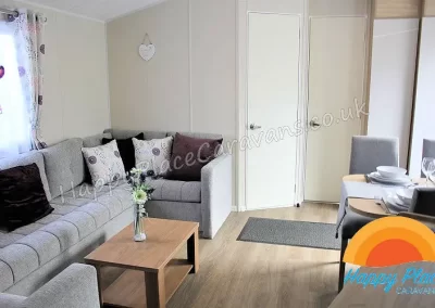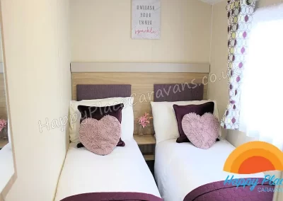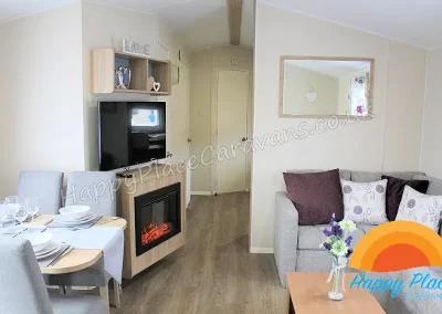 Unique layout with lounge in the centre of the caravan and one double plus one twin room at each end of the caravan. TV's in All the Bedrooms