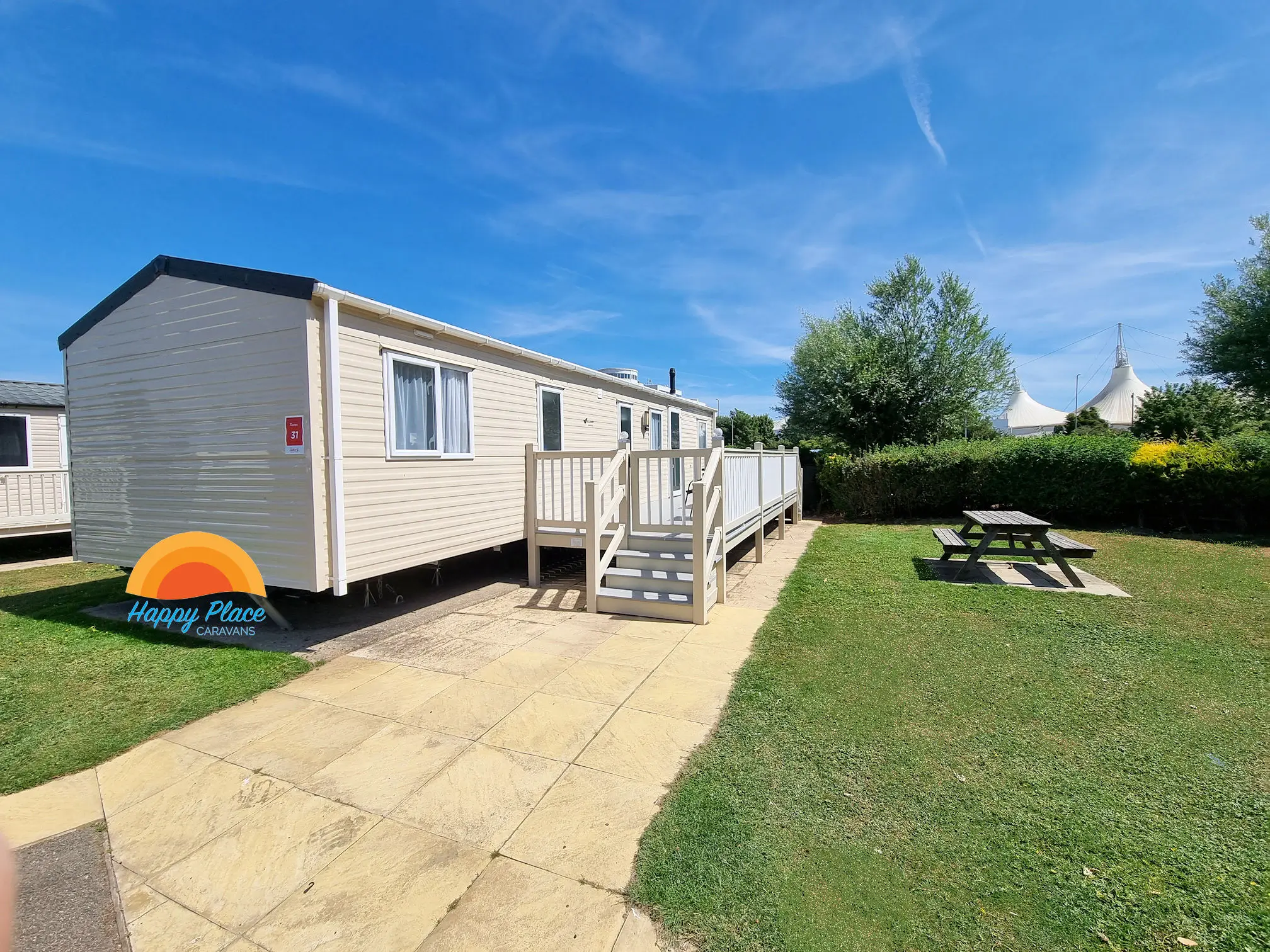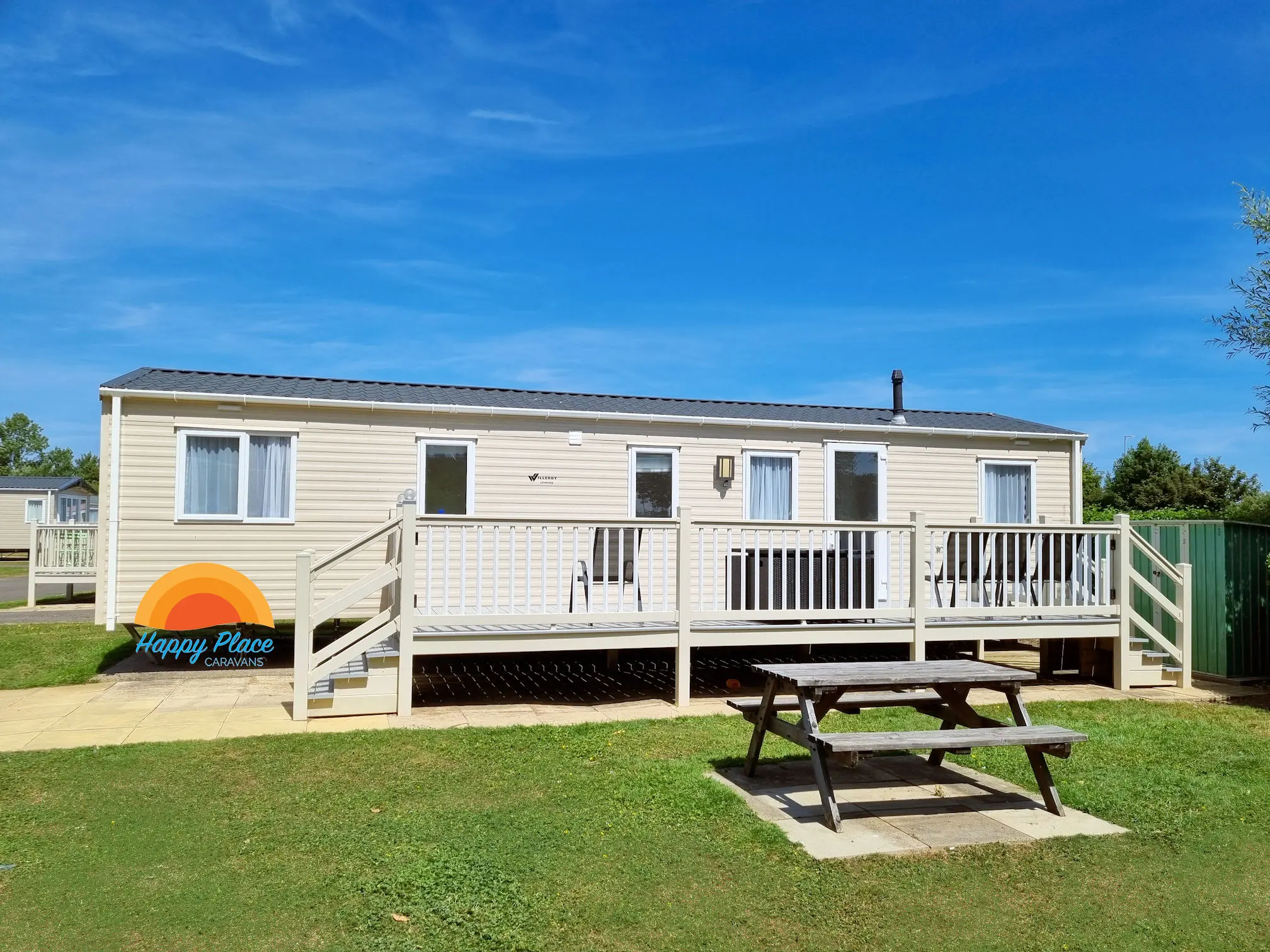 Check availability and pricing for our luxurious Willerby Linwood 4 bedroom caravan (maximum 10 guests). Ideally located on the Dunes area of the caravan village, with large sunny aspect gated veranda with table & chairs to relax in the sunshine, plus a sunny aspect grass area with table bench.