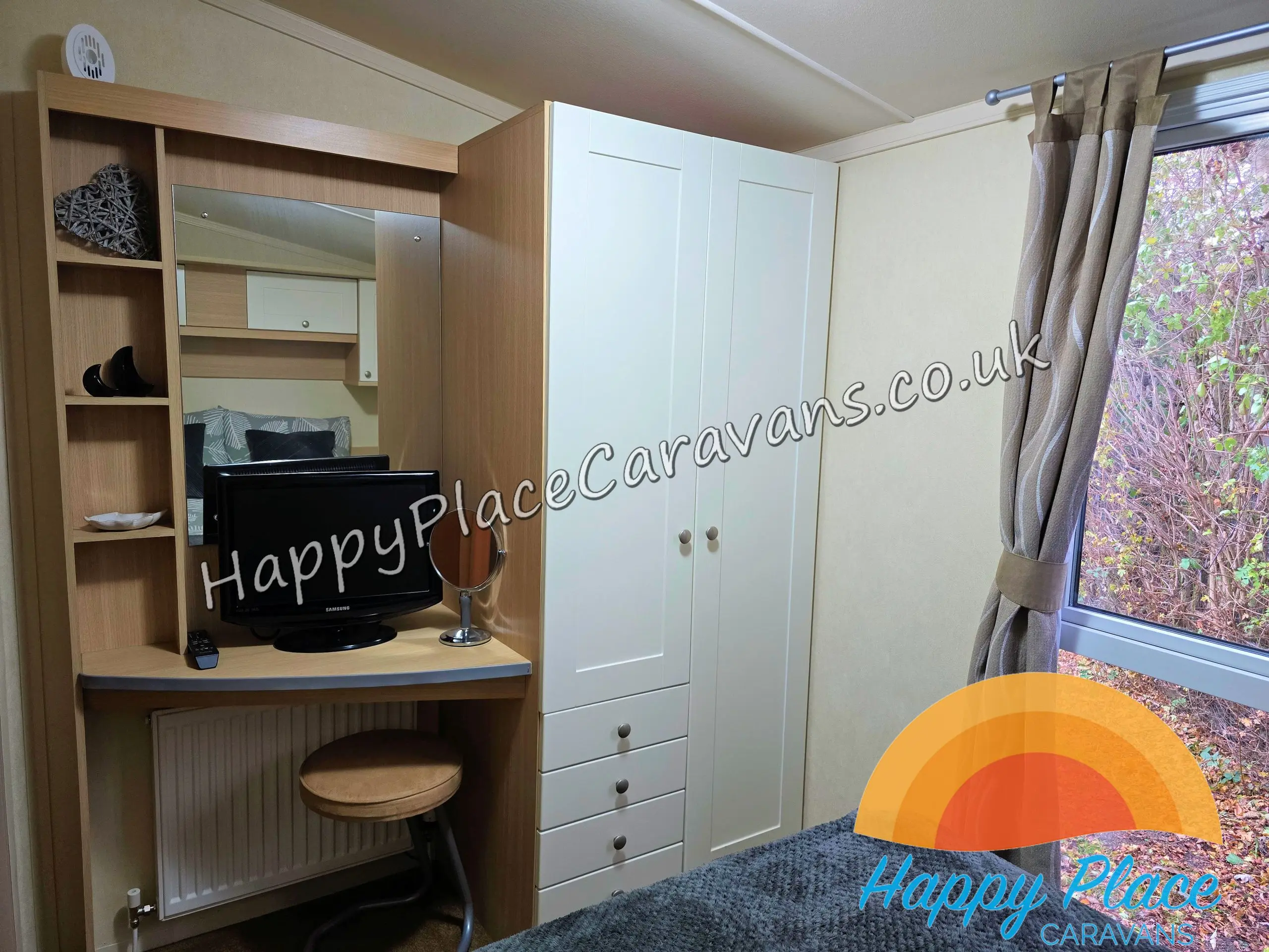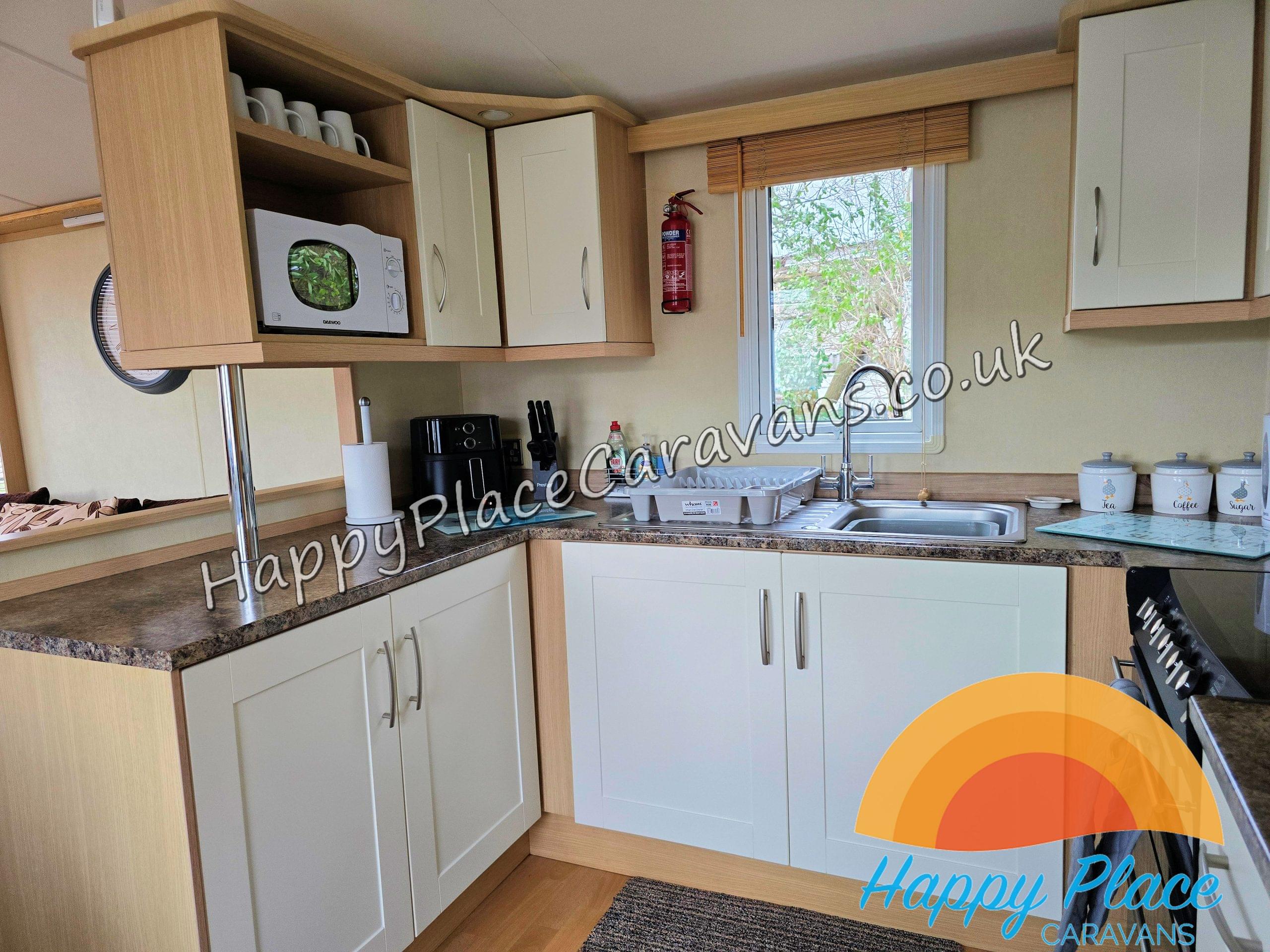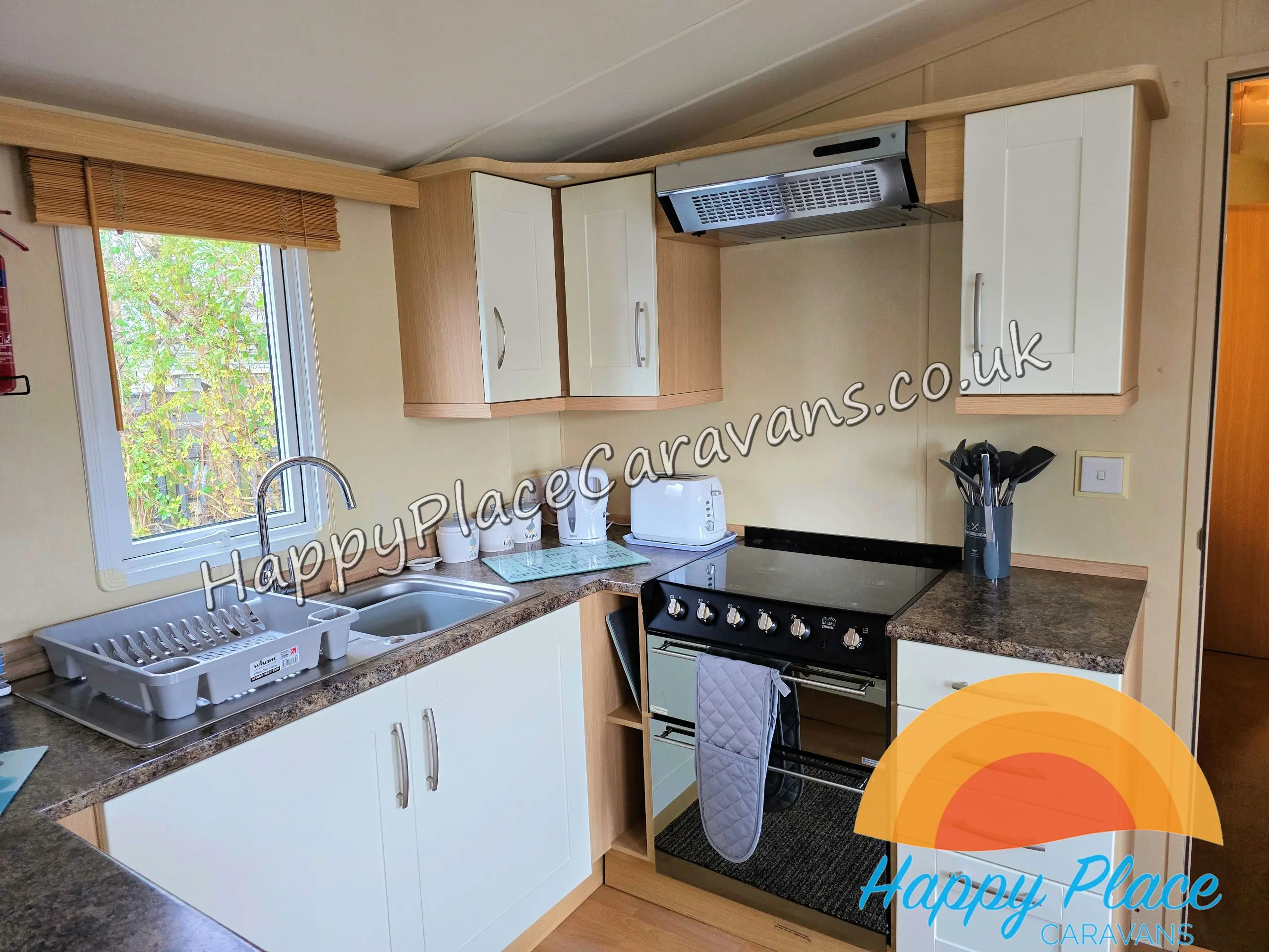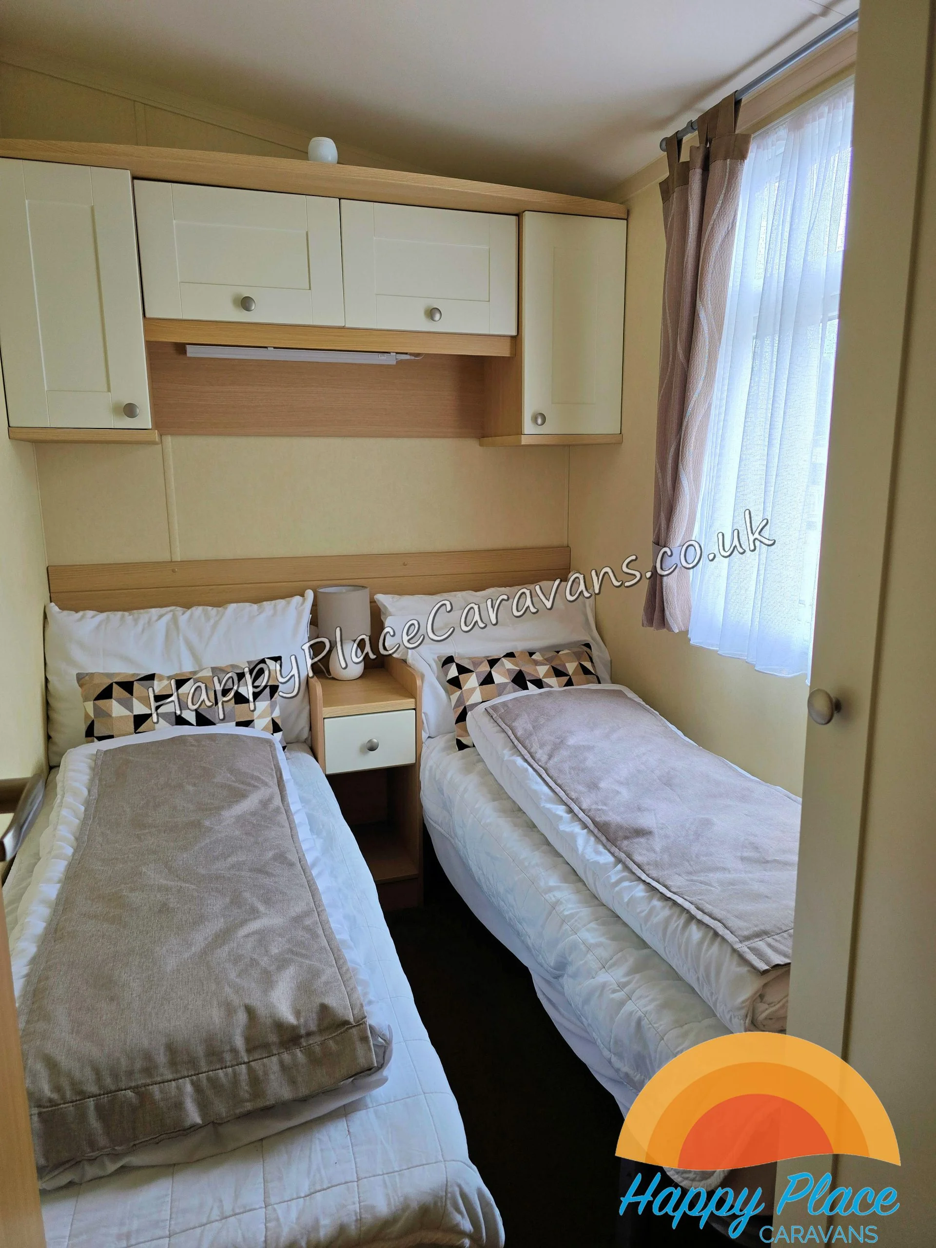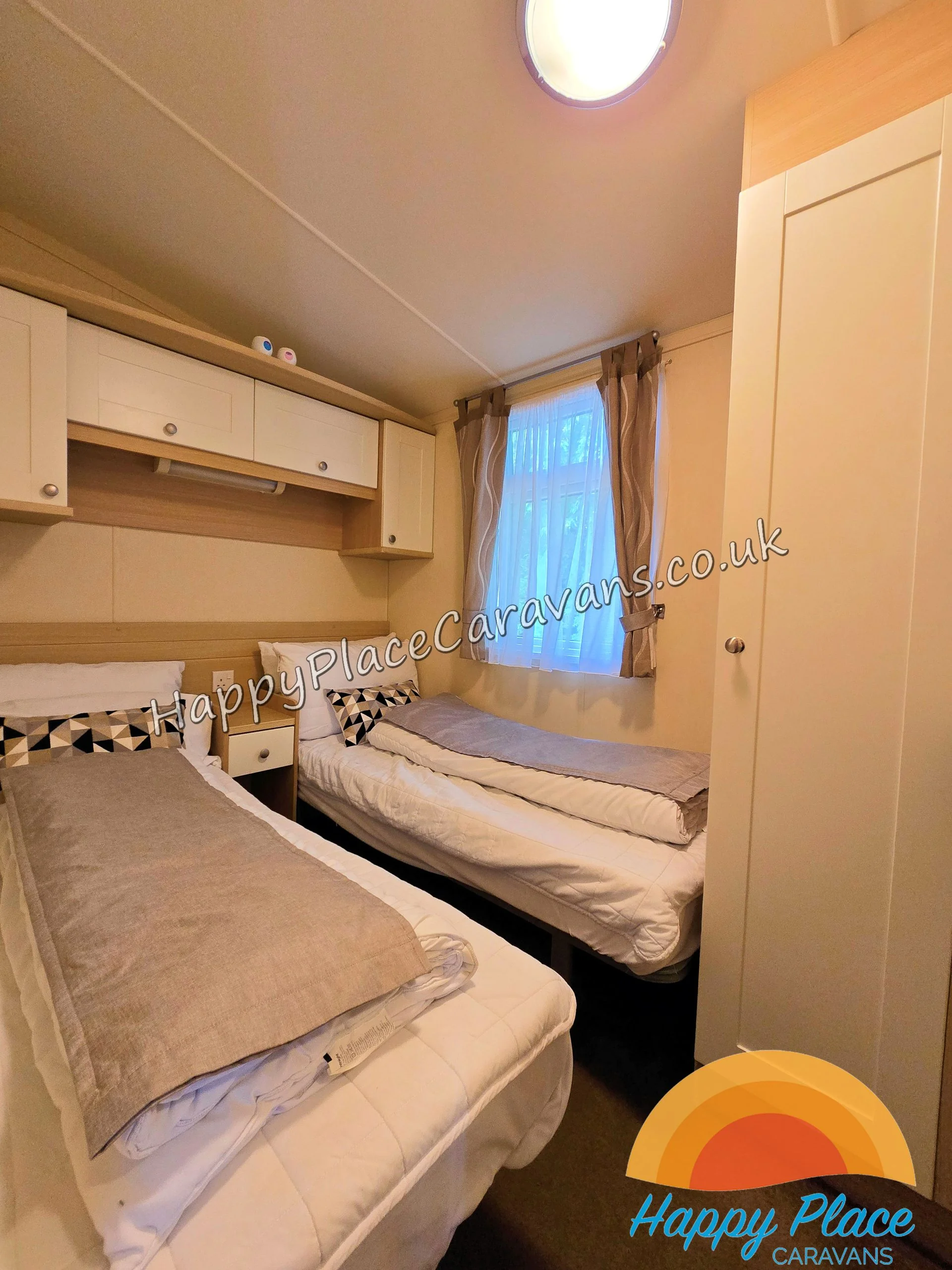 Under new ownership, this family caravan is now available to guests in 2025. This Gold Plus rated caravan on the quiet Parkside area of the caravan village is close to our Parkside 47 caravan, ideal if friends or extended family would like to be nearby. With one double and two twin rooms, plus a pull-out double sofa-bed for larger families. A well equipped kitchen and a comfortable lounge, make Parkside 34 your family holiday happy place,